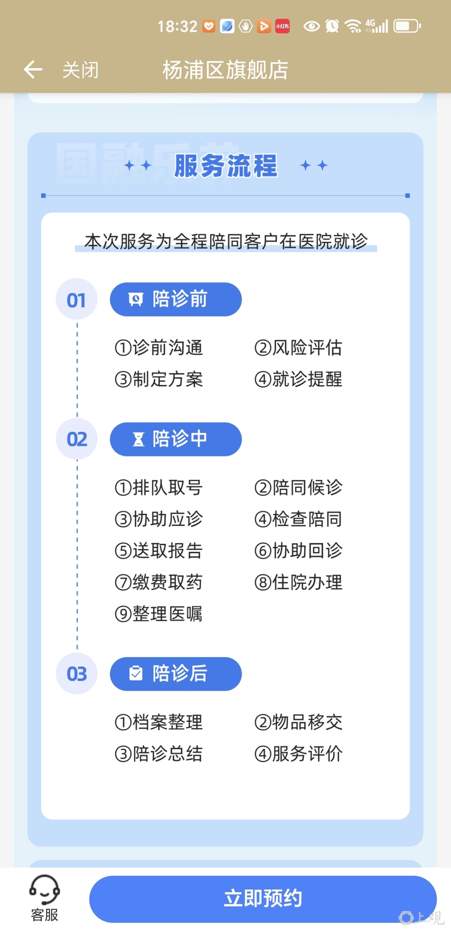 随申办的“杨浦区旗舰店”中,就医陪诊流程