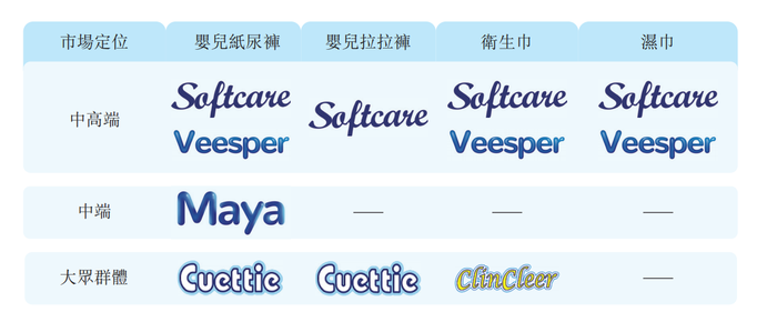 乐舒适旗下品牌包括定位中高端的Softcare和Veesper、中端品牌Maya以及面向大众群体的Cuettie和Clincleer。