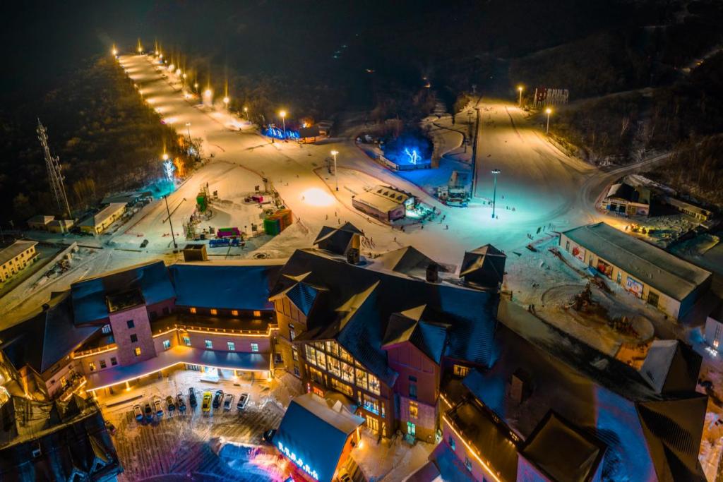 吉林市冰雪试验区北大湖滑雪度假区夜景