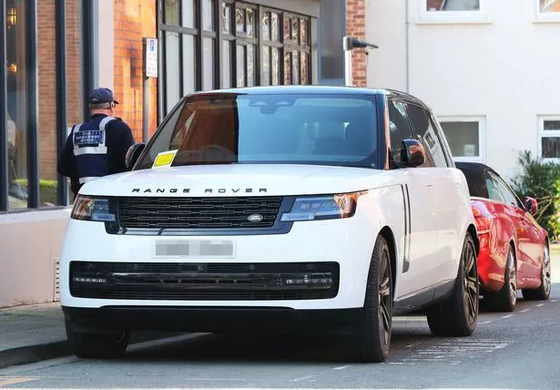 我们的照片显示,停车管理员离开了弗瑞的25车牌白色路虎揽胜,这款车价值约为18万英镑,并给了它一张可识别的黄色罚单。然后弗瑞夫妇回到车上,弗瑞和妻子说话,然后从挡风玻璃上拿走了罚单。