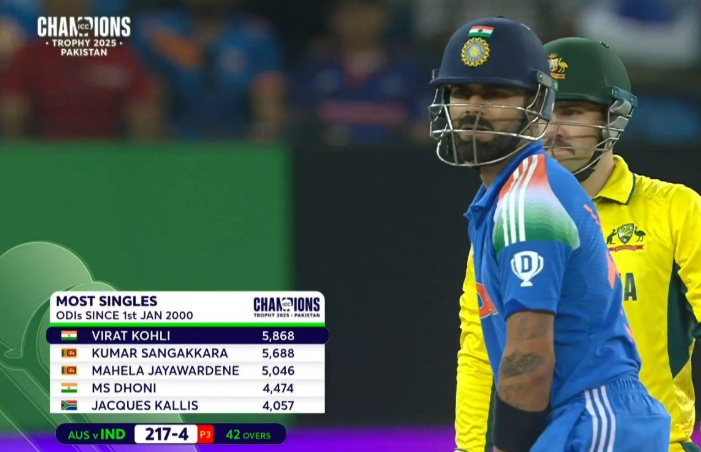 他控制一局节奏的能力进一步凸显了他的统治力。Kohli经常在任何可能的情况下打单打和双打,确保即使在中途也能达到目标。