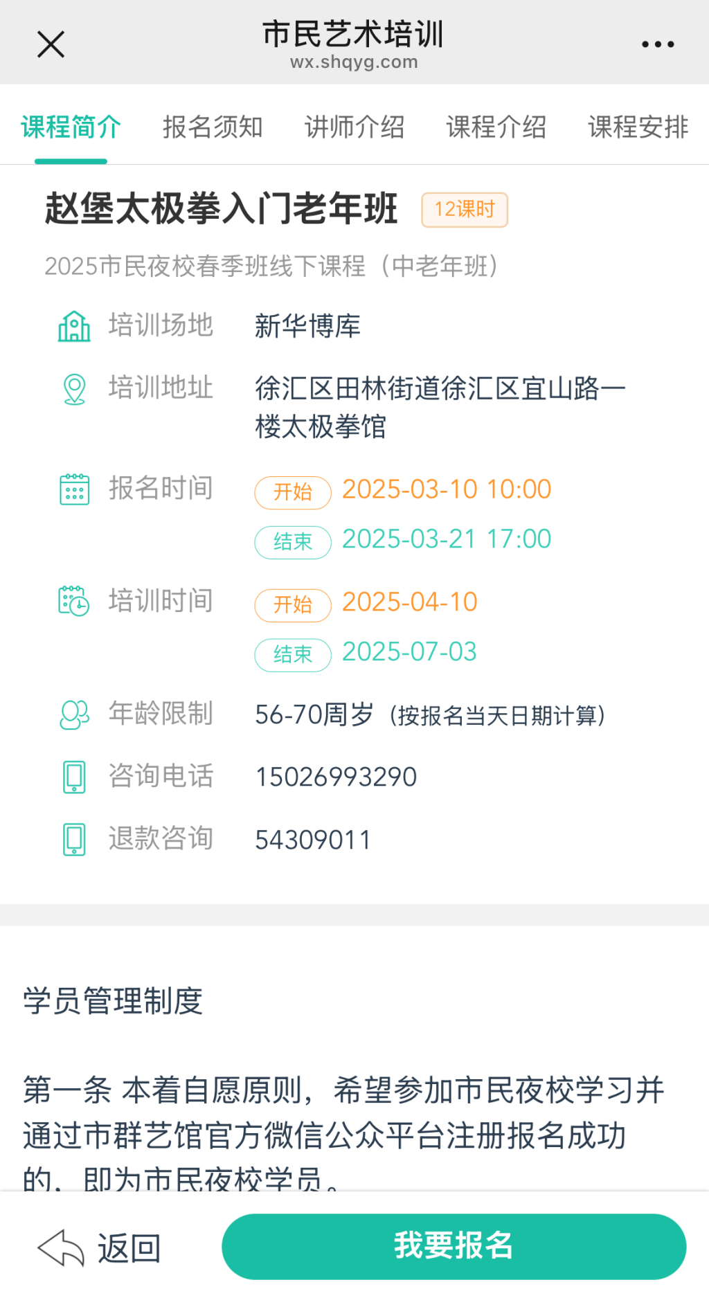 “赵堡太极拳入门老年班”是今年夜校首次开设的中老年班课程之一