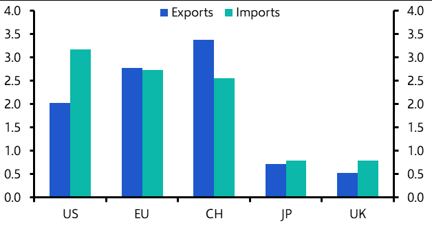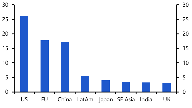 类似地,尽管欧洲的人口比中国少,但略多于美国。欧盟还是全球第二大出口国和第二大进口市场。