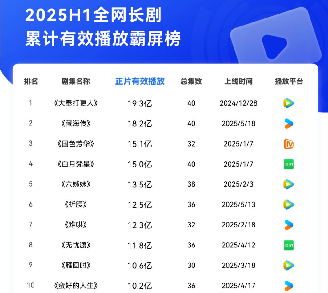 2025年上半年,不少流量们稳住了自己的内容和播放效果,平台的一些头部内容也播出了自己应该的表现,不少类型剧也受到了观众的认可和推崇,甚至一些还让观众发出了“它不应该只播成这样”的遗憾。