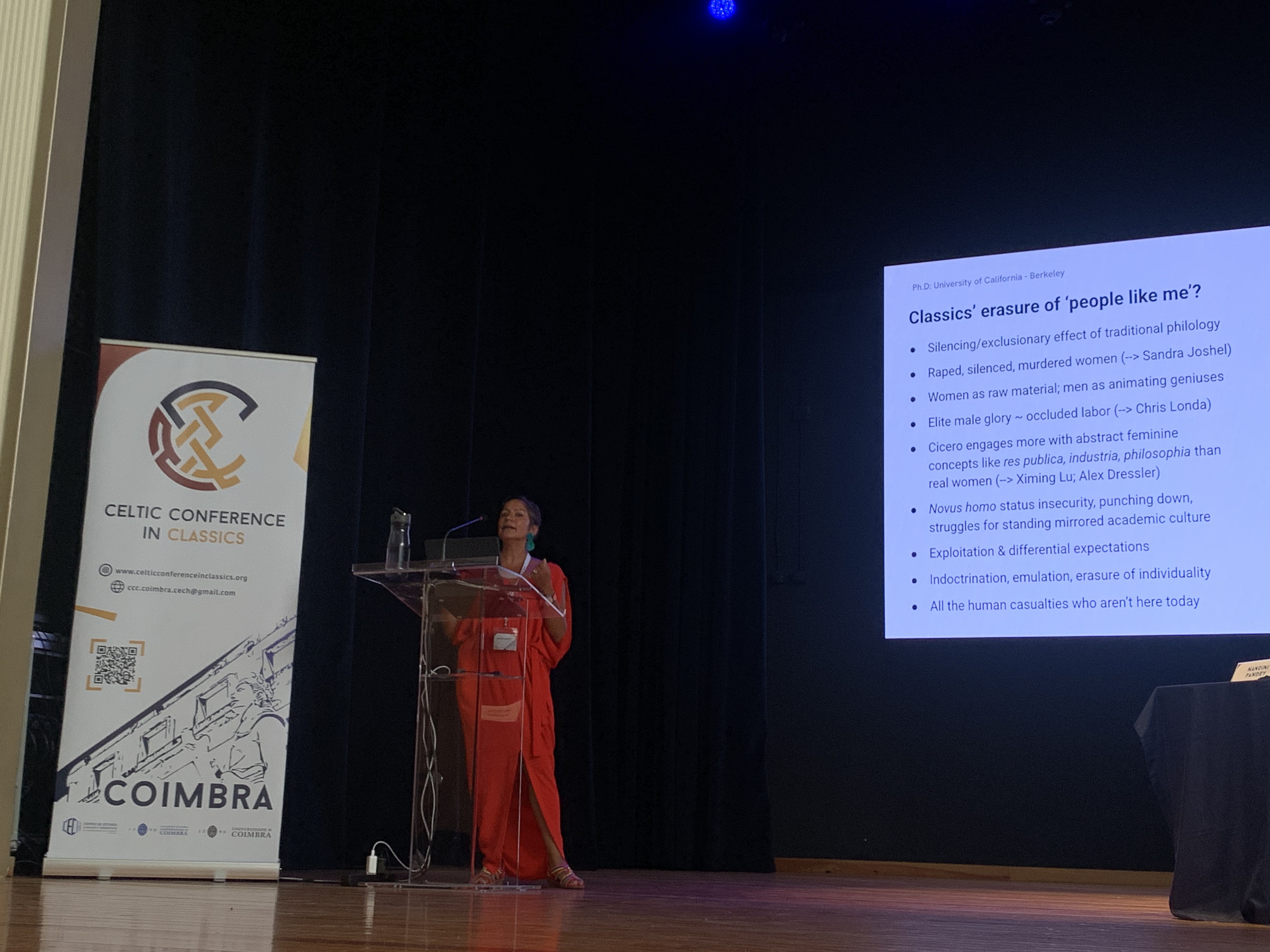 这次大会和许多国际年会一样强调民主性与包容性,面向古典学学生开放,倡导跨学科交流与国际合作。今年大会涌现出众多女性学者与来自多元文化背景的发言者,他们的研究不仅拓展了古典学的边界,也提升了整个学科的活力与感召力。特别值得一提的是,最后一场主题演讲由霍普金斯大学的印度裔美国古典学者Nandini Pandey压轴,她从拉丁文学谈到古典学学术,以极具个性与深度的方式讲述了自己在古典学界的亲身经历,反思多样性、公正与包容的问题。她从童年在美国公交车上遭遇羞辱开始讲起,面临那些同龄白人男孩在她年幼时的骚扰,她懵懵懂懂地拒绝。她孤独地沉浸在书籍里,沉浸在拉丁语里,认为这是自己的避风港。然而,当她求学牛津,依然要面对“你学古典学干什么”这种质问,而这种怀疑永远不会针对白人学生提出——她的存在与选择本身仿佛就是一个需要被解释的“他者”。她进一步以美国学界的终身教职体系(tenure-track)类比罗马的政务晋升路径(cursus),讲述自己在职业追求中被迫忽视生理与身份现实。经历流产时意识到在如今美国禁止流产的法令环境中面临生死威胁。在工作中曾有迷失,似乎忘记了古典学的意义。她发问:“我是否,像埃涅阿斯一样,正在成为自己曾经的对手?”(Was I, like Aeneas, becoming my own one-time adversary?)并引用《埃涅阿斯纪》第十二卷中的诗句以表达自己的情绪和认同转变。这是一场极具震撼力与反思性的演讲,不仅穿越文本与现实,更激发在场学生对于古典学学科意义、自我选择与身份对话的深刻思考。她将西塞罗与维吉尔的文字与自身身份认同融合,坦率分享自己在古典学世界里的追寻与挣扎,令人动容,也彰显出古典学对现代社会议题的回应。Nandini Pandey在主题演讲中呈现出古典学一直在反思的问题:学术意义与价值,过去白男精英主导的学术圈氛围、女性在古典学之中的声音……在欧美国家持续裁撤古典学专业并削减经费之际,她的演讲让听众再次思考如何阐释古典学的社会意义。