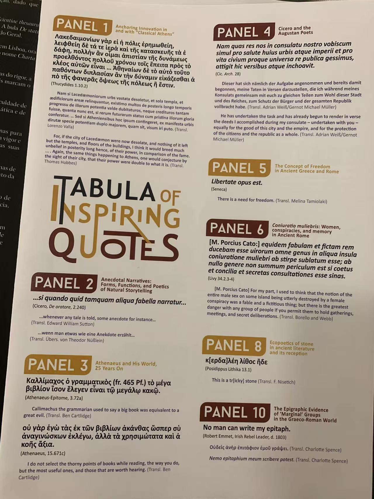会议主办方发放了设计感十足的水瓶与帆布袋,融合古典元素,兼具实用价值与纪念价值。与此同时,会议宣传手册也别具匠心,在给出会议路线与场地等信息的同时,还以古希腊语或拉丁语展示出分论坛的主题设计。