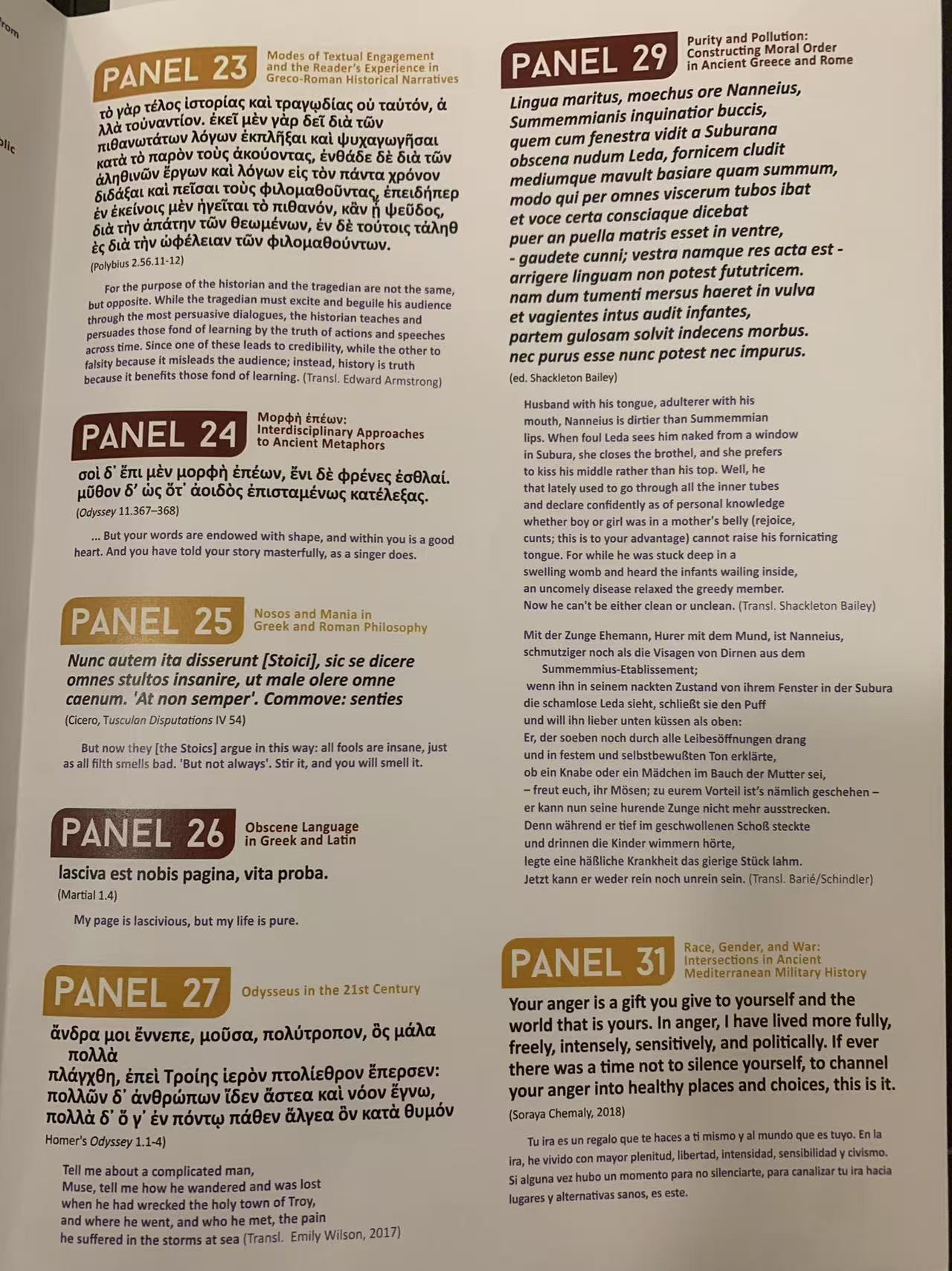 今年大会规模空前,共设39个分论坛,吸引近600位来自各大洲和不同年龄层段的学者,堪称古典学界的年度高光时刻。此次古典学大会的分论坛展现出跨学科、多元化的研究趋势与强烈现实关怀。大会主题涵盖古希腊与罗马文学、修辞、哲学及手稿传统,也包括对修辞手法、自然叙事、认知理论、文本传播模式、镜像场景、文学人物再造与悲剧财富等深层次探讨。同时,也聚焦政治意识形态、自由与奴役隐喻、边缘群体与迁徙身份,以及女性在政治阴谋和书信交流中的角色,彰显出古典学在社会研究中的活跃性。部分分论坛聚焦物质文化与宗教象征,例如神祇属性与祭祀物件之间的关系、爱欲与物品的连接、古代纺织与水资源管理研究等,将古典文本与考古材料紧密结合。此外,关于生态诗学、军政暴力、殖民重构以及古代污秽与纯净观念的专题,也体现出当代古典学对环境与伦理议题的敏感回应。本届会议内容跨越文本、社会与文化空间三大维度,从奥古斯都时期诗人到21世纪的《奥德赛》,从古代疯癫哲学到拉丁讽刺诗的界限突破,形成了一场真正意义上的思想交锋和时代对话。这次大会不仅映射出古典学者对历史的深刻洞察,更体现古代世界如何持续为我们当代的认知与表达提供资源与灵感。