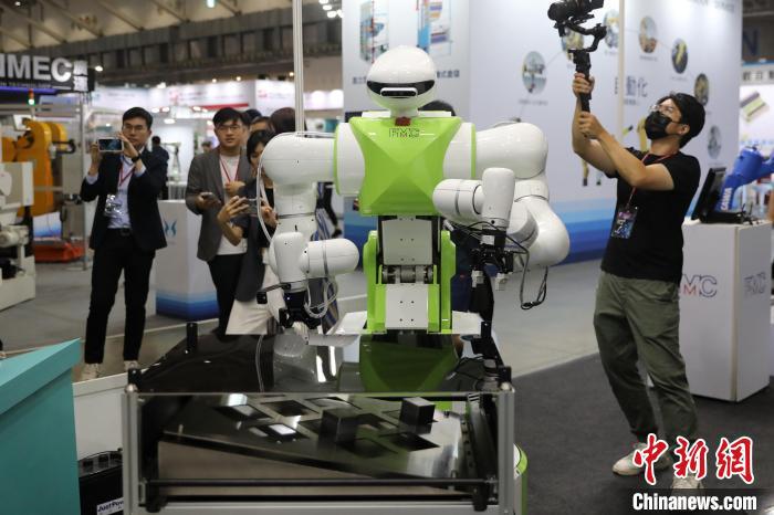 2024 年 8 月 21 日,台湾机器人与智慧自动化展、台北国际自动化工业大展等九个展览在台北南港展览馆同时开幕,共有 1200 家厂商参展,展位 4500 个,均为历年新高。展览主要展示人工智能在制造业的应用。中新社记者 陈小愿 摄