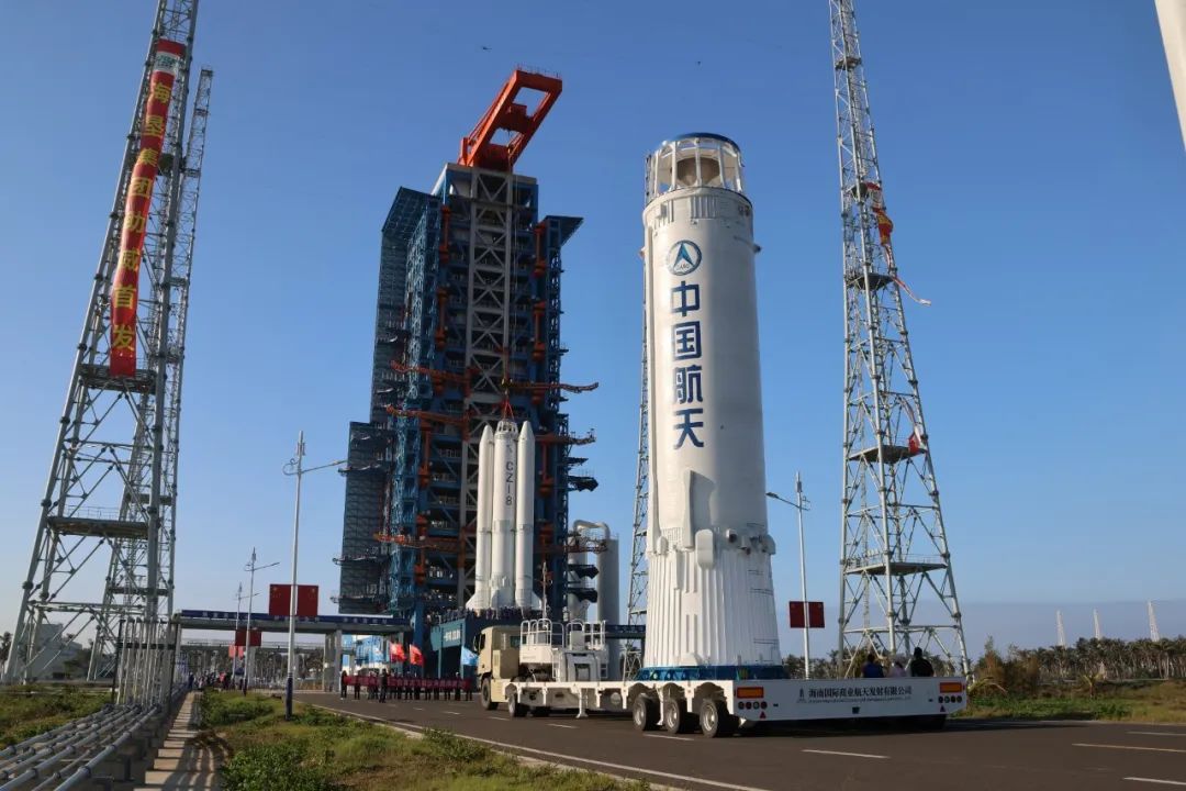 本次任务中,长八火箭创新采用新三垂测发模式,其中,垂直转运过程中,箭体被分为三段转运,芯一级助推组合体、芯二级箭体、星罩组合体分别以垂直状态,由公路运输至发射区。火箭在发射区完成垂直总装、测试和发射,具备7天发射、7天恢复的能力,可满足未来高密度发射需求。
