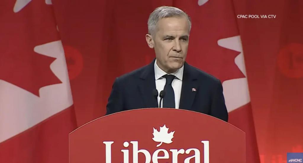 ·当地时间 3 月 9 日,卡尼发表胜选演讲。