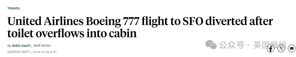 之前也曾有航班因厕所问题 " 闻名世界 ",比如去年 4 月,美国联合航空从法兰克福飞往旧金山的航班,因马桶溢水进入客舱不得不返航。