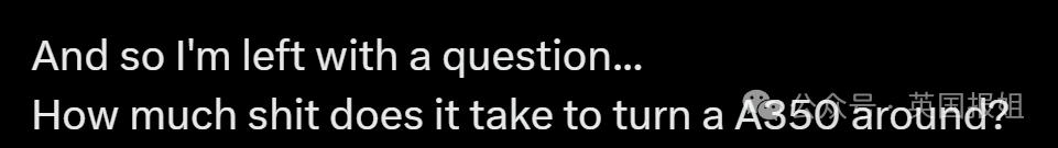 " 我就一个问题,让一架 A350 飞机回头到底需要多大分量的屎?"