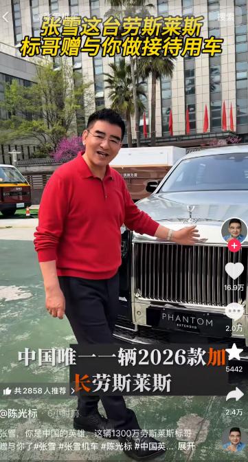 陈光标:1300万元劳斯莱斯送张雪,中国唯一一辆,他值得最高礼遇生活