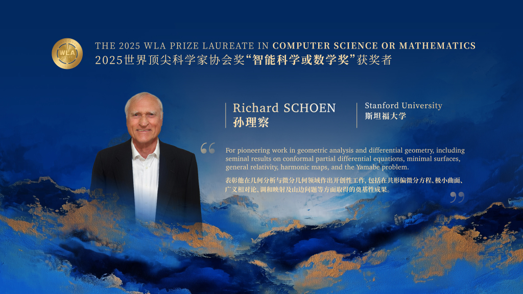 2025顶科协奖“智能科学或数学奖”授予斯坦福大学人文与科学学院名誉讲席教授孙理察,表彰他在几何分析与微分几何领域作出开创性工作,包括在共形偏微分方程、极小曲面、广义相对论、调和映射及山边问题等方面取得的奠基性成果。孙理察将获得2025顶科协奖1000万元单项奖金。