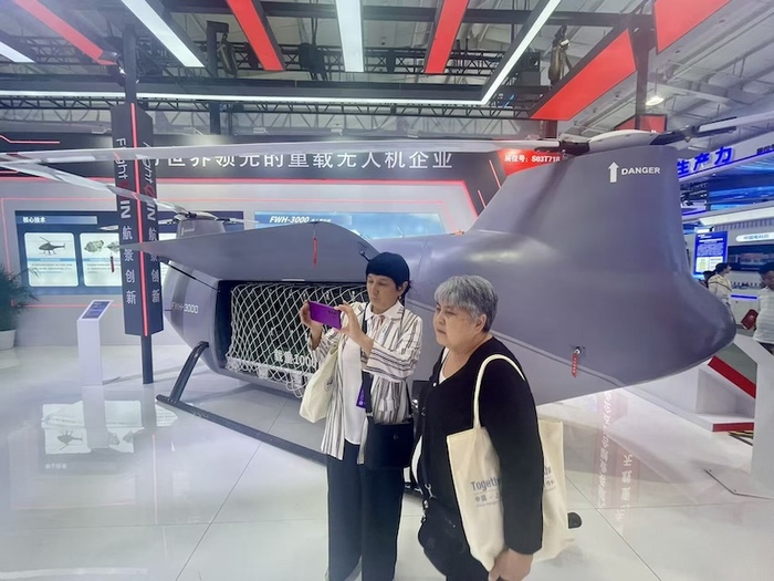 在本次服贸会上,北京航景创新科技有限公司展出的FWH-3000重载无人直升机,具有大载重、长续航的飞行能力,可用于高原、森林、荒漠等区域执行物流运输、医疗救援、森林灭火等任务,已经远销东南亚、中东、非洲等地区。
