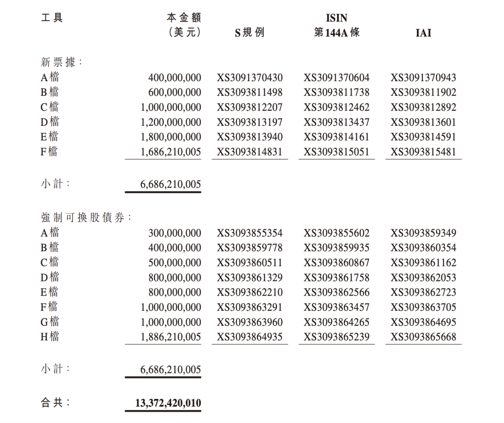 公告显示,佳兆业已根据重组计划向合格债权人发行了总额约133.72亿美元的6档新票据与8档强制可换股债券。新票据与强制可换股债券预计于2025年9月16日在新加坡交易所上市。