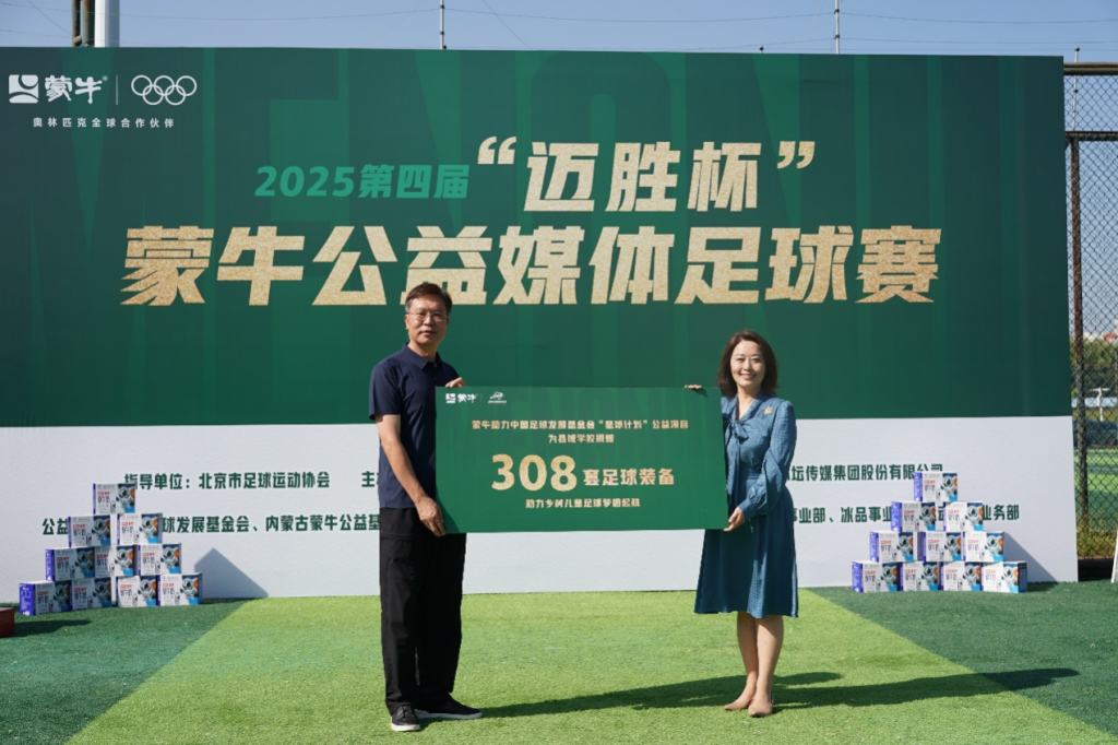 9月14日,由北京市足球运动协会指导、蒙牛集团主办、体坛传媒集团承办的第四届蒙牛“迈胜杯”媒体足球冠军赛在激情与感动中落下帷幕。作为中国足球发展基金会支持下的2025年社会足球赛事公益项目之一,本届赛事全程深度融合公益基因。主办方蒙牛联合中国足球发展基金会发起全新公益行动:参赛队伍在赛事里每进一球,主办方就向乡村地区儿童捐赠一套足球装备,并邀请冠军球队与最佳射手代表参与落地捐赠。