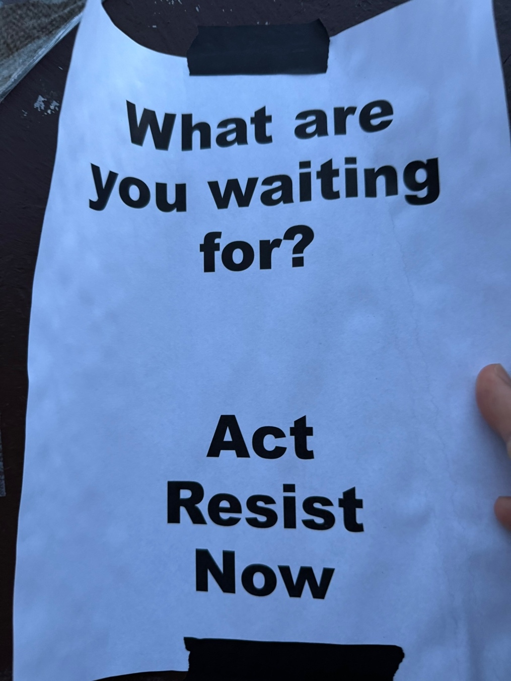 “你还在等什么?现在行动/抵抗”——这张小海报没有任何背景,没有具体交代什么事件,就是呼吁大家行动。行动针对谁?抵抗什么?这种满腹不满却匿名、不说明白的表达方式,也是当下政治气氛的一种表征。