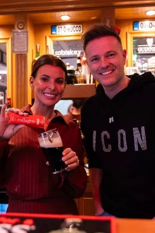 科琳和西城男孩的尼基·伯恩。《我是名人》的亚军让他尝试了她的应用营养系列和一品脱吉尼斯黑啤