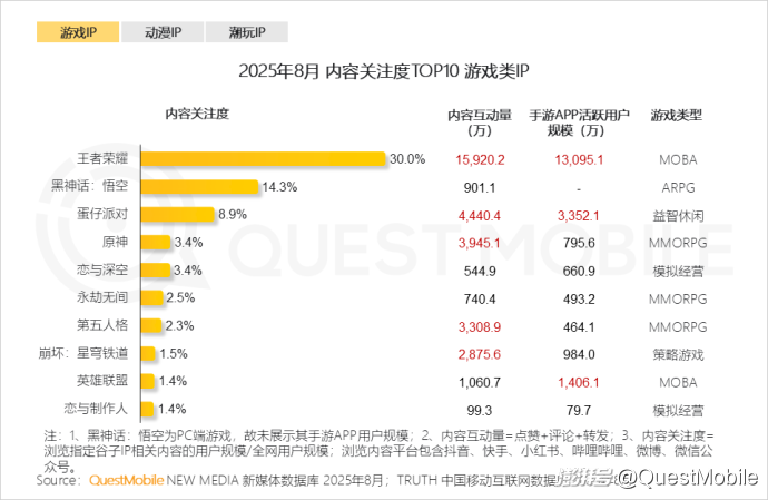 2、此外,国产IP热度的持续上升也与IP的深度开发有关如《浪浪山小妖怪》《哪吒2》电影上线,《凡人修仙传》的剧版推出进一步放大原有IP热度;而《王者荣耀》《原神》等常青IP则通过构建沉浸式的世界体验、线上线下联动等方式持续吸引用户。