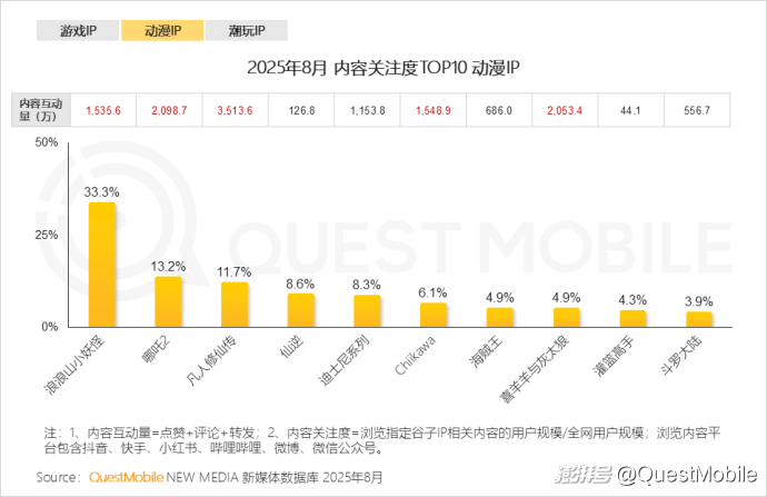 如《浪浪山小妖怪》《凡人修仙传》等IP,凭借对成人世界观的深刻描绘及影视化运营,其用户关注度与互动量已超越部分经典作品。