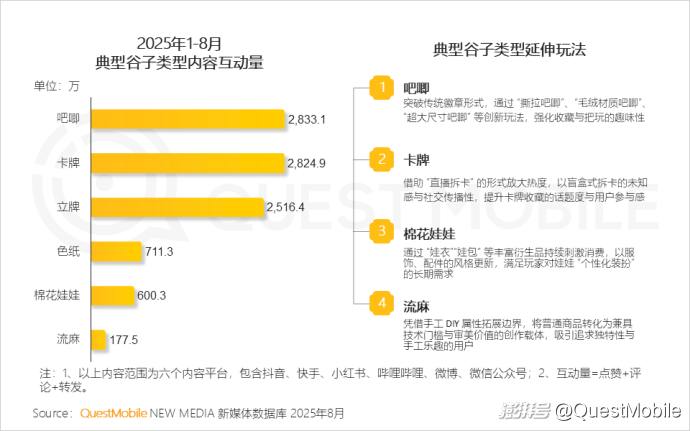 4.1 谷子品类上,满足大众需求的吧唧依旧主导,衍生玩法催化传播,谷子经济从实物收藏走向共创体验