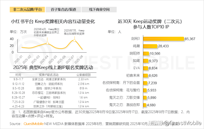 如Keep线上跑以实体奖牌为核心激励抓手,将抽象的运动成果转化为可触摸、可展示的具象化奖励,有效激发用户的参与热情与运动黏性,吸引二次元圈层人群(可能原本对健身不感兴趣)为喜爱的IP而尝试跑步。
