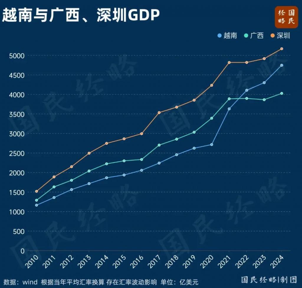 论经济,越南一个国家的 GDP,刚刚超过广西,不及深圳市。