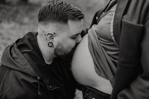 准爸爸查理亲吻他的伴侣玛拉基怀孕的肚子(图片:提供)