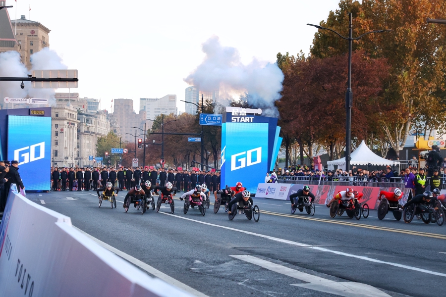 金色的晨曦洒落浦江两岸,深秋的上海被奔跑的脚步声唤醒。6时45分,19名参加竞速轮椅马拉松项目的选手率先开赛。7时,2.3万名跑者从外滩金牛广场出发,在42.195公里的赛道上感受城市脉搏。跃动身姿与斑斓秋景共同绘就一幅属于申城的活力画卷。