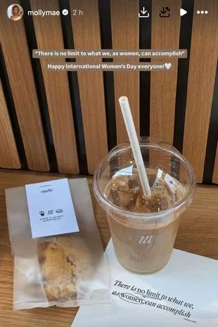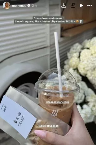 为了庆祝国际妇女节,这位25岁的女孩开了一家梅比快出咖啡店,她很高兴能把自己的手弄脏,因为人们看到她挽起袖子,拖着沉重的瓶装水在会场里走来走去。在这座城市著名的林肯广场,Molly-Mae和她的团队为2000名幸运的客人提供了享用Sage煮的冰咖啡和bake by Bean的美味烘焙食物的机会。
