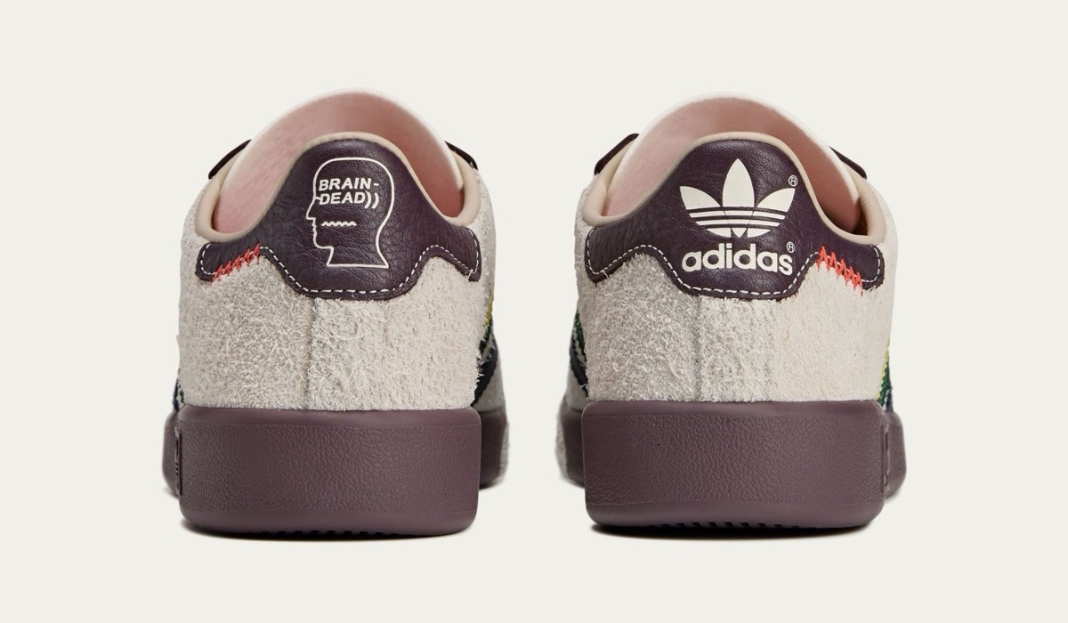细节上,撞色对比让鞋子显得更为独特。装饰在鞋侧的三道杠条纹与麂皮鞋面不同的色彩,而鞋尾的标识采用了白色外缝线进行装饰。该系列将在4月正式在Brain Dead和阿迪达斯部分渠道进行发售。
