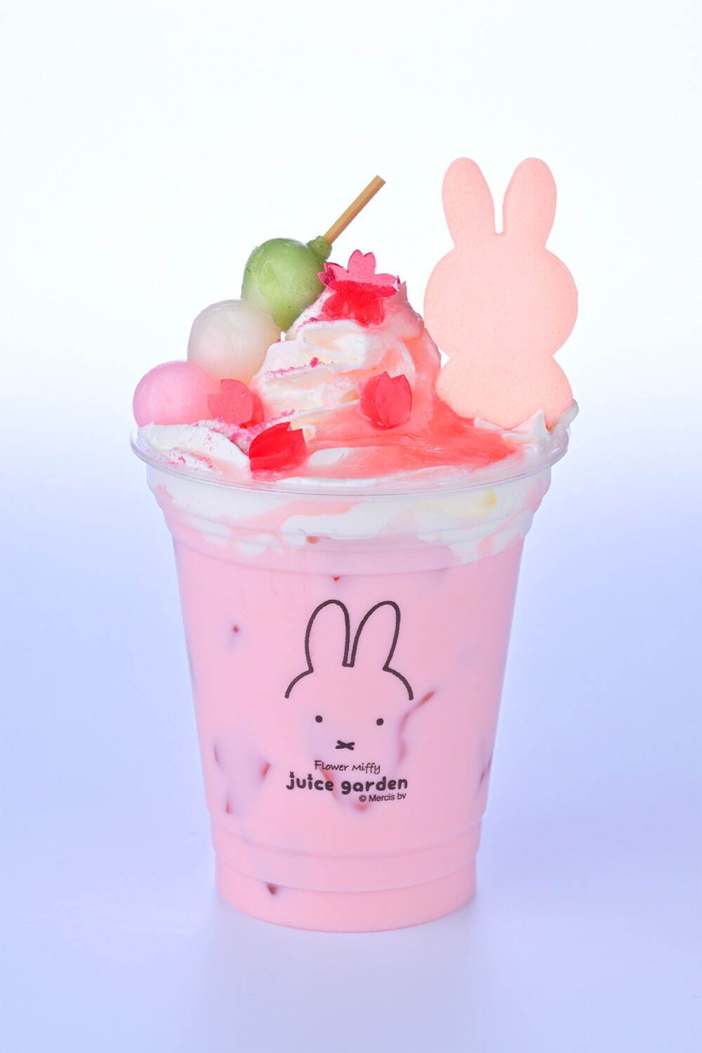 开在东京丰岛区的Flower Miffy Juice Garden甜品店近期为了迎接樱花季,近期推出去了全新的米菲食品系列,包含一款拿铁和一款蒙布朗。粉色主题和带有米菲造型的兔子装饰,是两款产品的共同点,确保了它们会成为能在社交媒体上获得打卡和分享的网红款。