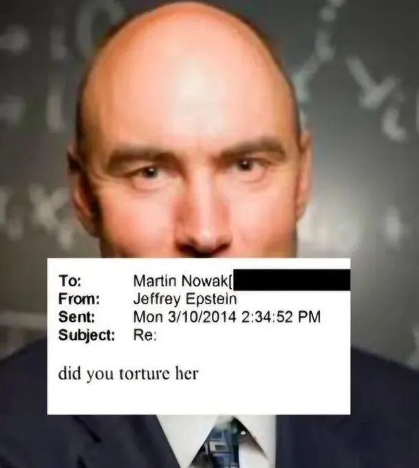 丘成桐提到的这位诺瓦克,是任职于哈佛大学,教数学与生物的教授。爱博斯坦在 2014 年 3 月 10 日周一下午 2 点 34 分 52 秒给他发了封邮件,只一句话:" 你折磨她了吗 "。