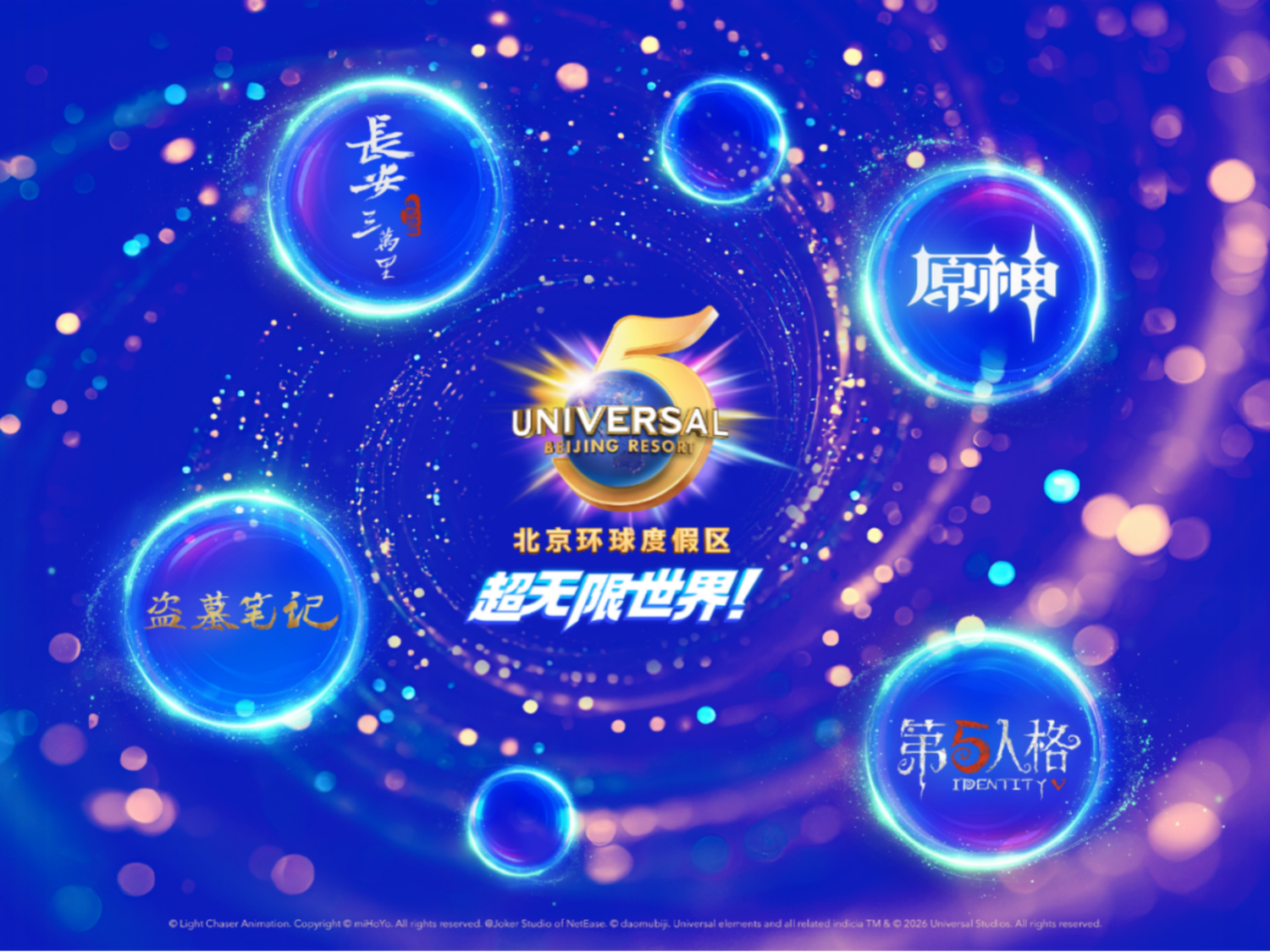 为庆祝开园五周年,北京环球度假区宣布长安三万里、原神、盗墓笔记、第五人格等多个全球高人气 IP,将分别加入2026年北京环球度假区“环球无限春日”和“惊彩”环球主题性季节活动,通过跨次元IP联动呈现独家故事、结合更丰富的剧情和玩法,为广大游客与IP粉丝带来满足多元热爱的主题公园沉浸式娱乐体验。