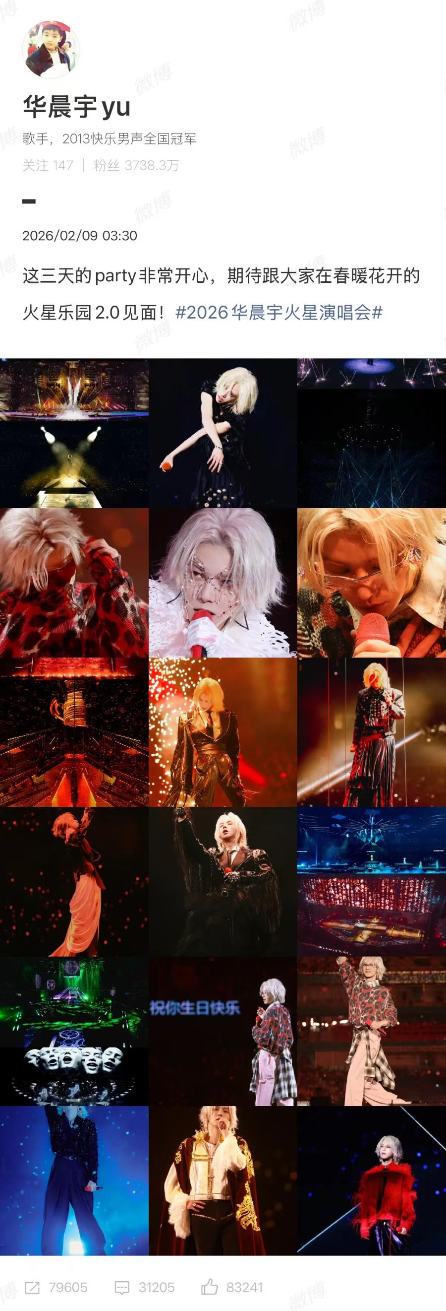 2 月 8 日晚,花花(歌手华晨宇)在演唱会现场发布一则重磅消息: