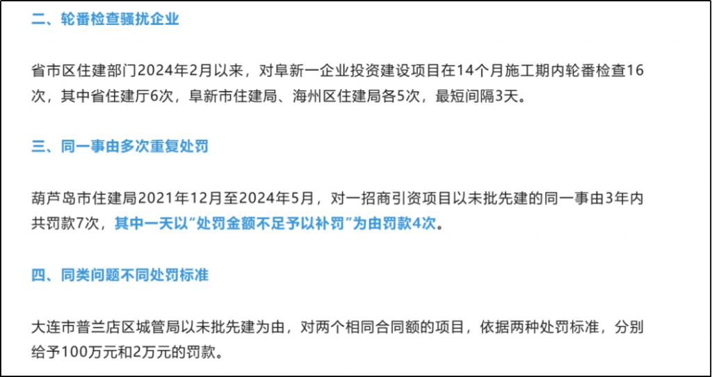 比如 " 轮番检查骚扰企业 "" 同一事由多次重复处罚 " 等的主体都是单位。