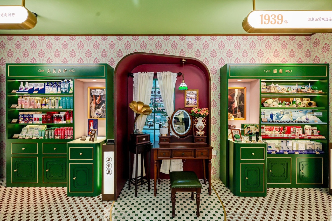 此次快闪以品牌前身“香港大药房”为灵感,将岭南建筑风韵、经典港风与现代设计融合,复刻玻璃药瓶、雕花药柜、民国广告与仿旧招牌等历史元素,营造出沉浸式的时光场景。步入店内,仿佛穿越百年,从西药房的启程,到国际健康与美容零售集团的发展轨迹,品牌与城市的共同记忆在细节中被重新唤醒。