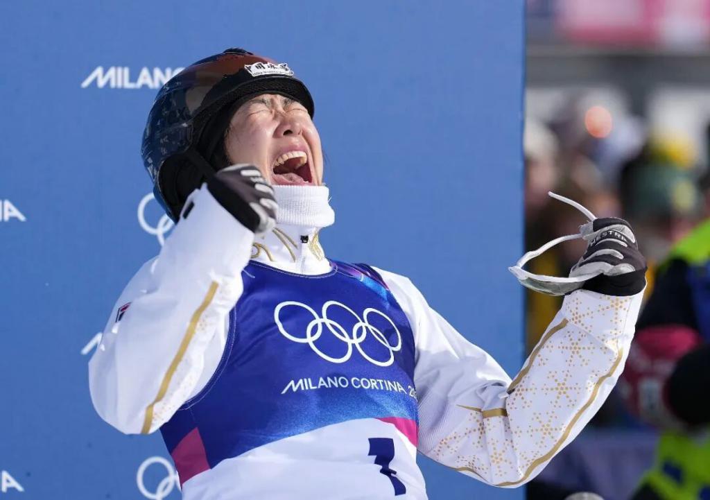 2 月 18 日,徐梦桃在比赛后庆祝。新华社发
