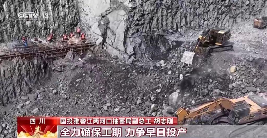 国投雅砻江两河口抽蓄局副总工 胡志刚:作为混蓄项目的下水库,牙根一级水库也在春节期间迎来新突破,启动了大坝混凝土浇筑。1000 多名建设者一直坚守一线,全力确保工期,力争早日投产,为大众提供稳定的清洁绿电。