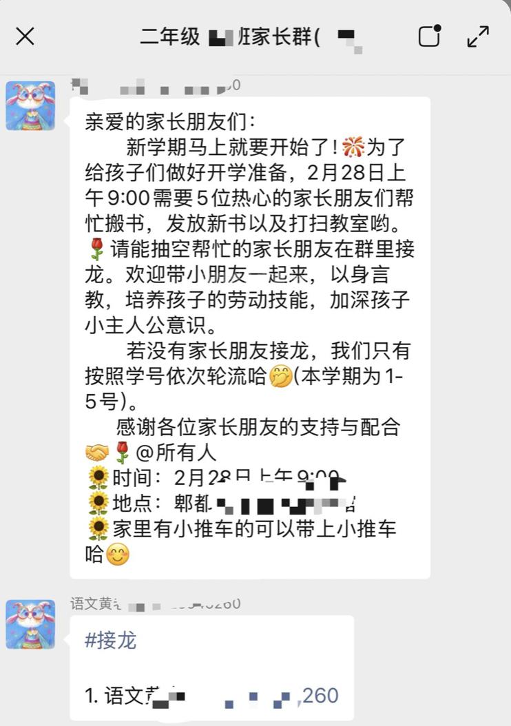 成都一学校征集家长开学前到校打扫卫生,家长质问“这样真的好吗”?当地教育局回应
