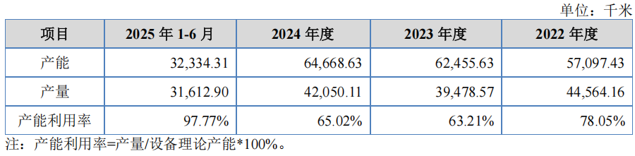 然而,文峰光电公布的一组数据让这个扩产计划显得颇为尴尬:2023年和2024年,公司主打产品线缆的产能利用率分别仅为63.21%和65.02%。换句话说,在过去两年里,公司有超过三分之一的产能处于闲置状态。