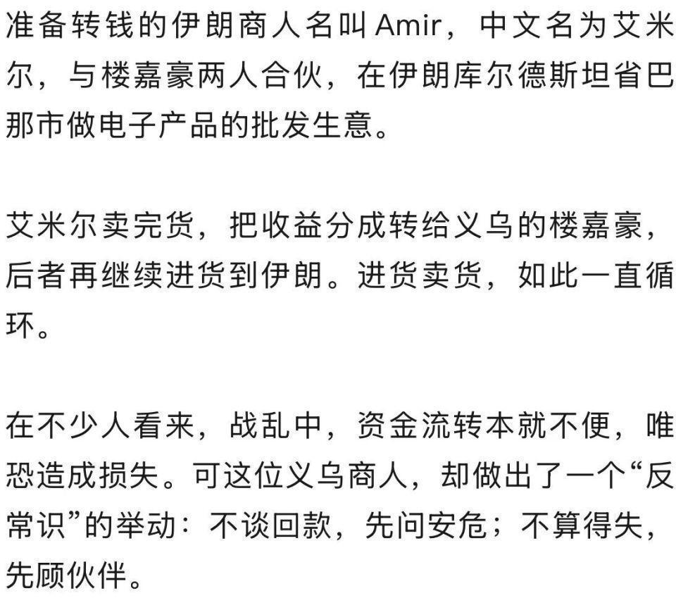 “钱别转,你留着,希望你平安!”伊朗客商冒战火主动转钱,义乌商人一口回绝