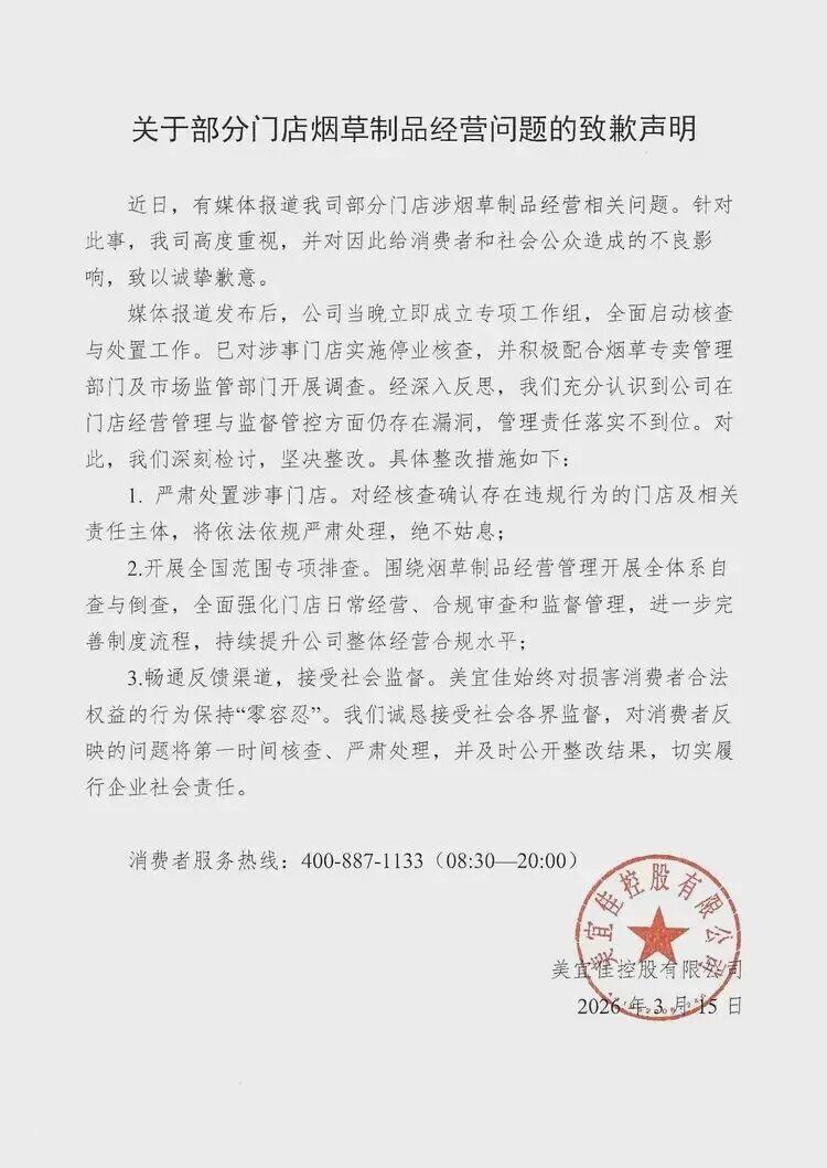 次日,美宜佳总部发布致歉声明,宣布涉事门店停业核查,并启动全国范围的排查工作。