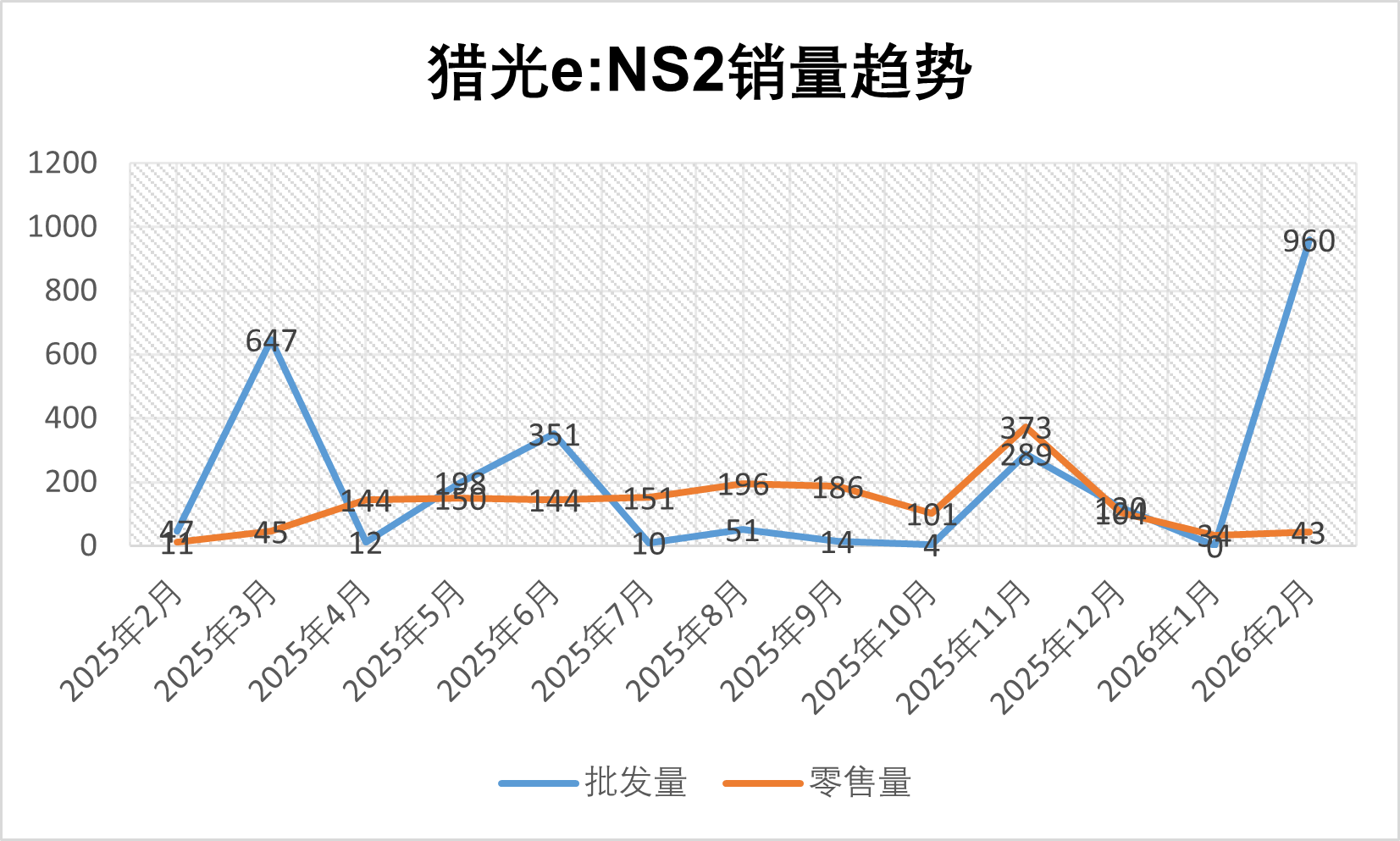 但上市后,猎光并未在中国市场站稳。易车网数据显示,该款车自从2024年下半年上市起,零售量长期停留在两位数到百位数之间。其中,2026年2月零售量为43辆,出口量为960辆。