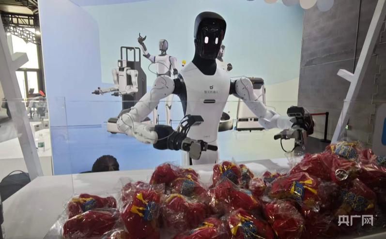 机器人能干什么?汪凤全指了指正将礼物递给观众的 " 精灵 G2"。" 递送礼物主要实现的是机器人的抓取功能。" 他介绍,这种机器人已开始拓展零售场景,在白玉兰广场等多个上海地标布设。消费者只需通过 pad 点选,机器人就会把饮料或商品递送过来。