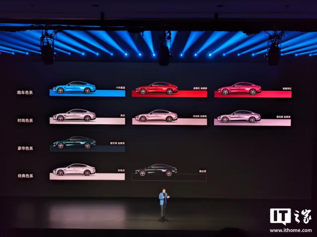 设计美学方面,新一代 SU7 延续家族化设计,新增卡布里蓝、赤霞红、靛石绿三款车色,引入 YU7 的流金粉和 SU7 Ultra 的曜石黑,总共提供多达 9 款配色可选: