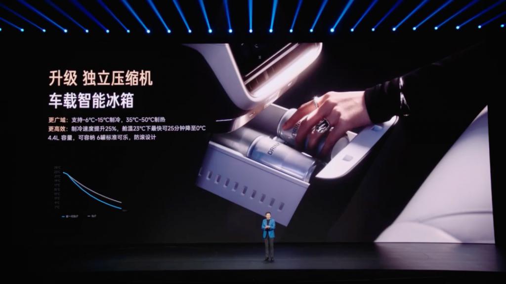 豪华配置方面,新车的车载智能冰箱升级独立压缩机,支持 -6~15 ℃ 制冷、35~50 ℃ 制热,4.4L 容量可容纳 6 罐标准可乐;全系标配重低音扬声器,标准 / Pro 版升级 14 扬声器高级音响系统,Max 版更配备 25 扬声器豪华音响系统,支持杜比全景声。