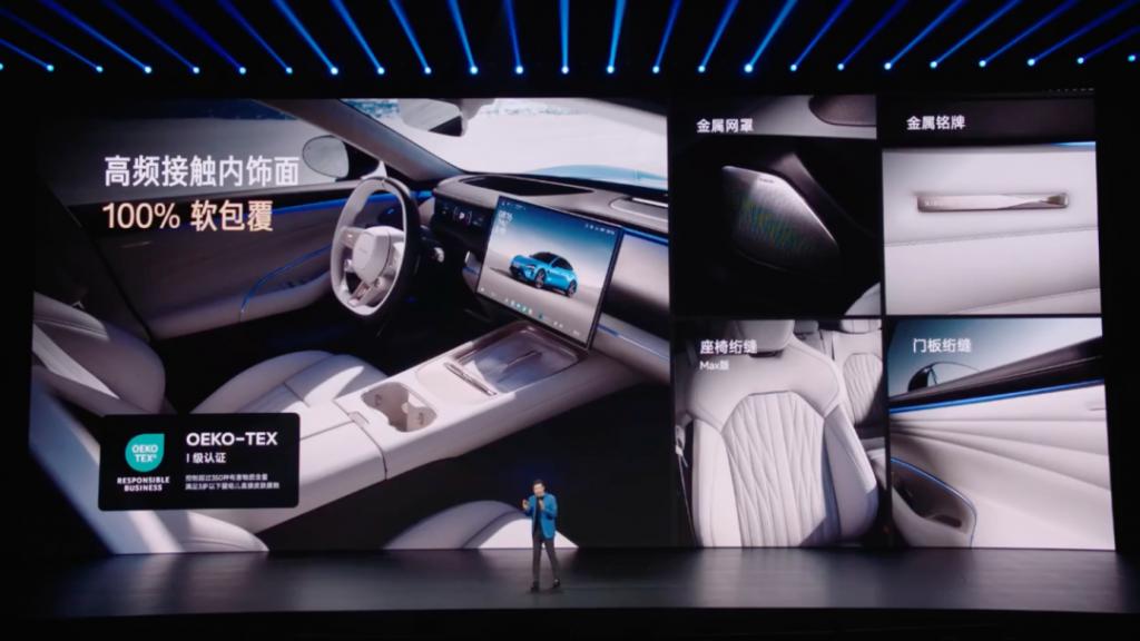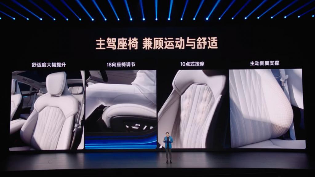 全系座椅舒适度升级,主驾全系标配 18 向调节运动座椅,支持 10 点式座椅按摩和主动侧翼支撑;副驾新增零重力座椅;后排座椅升级舒适睡眠头枕,高频接触内饰面采用 100% 软包覆,婴幼儿也可安全接触。