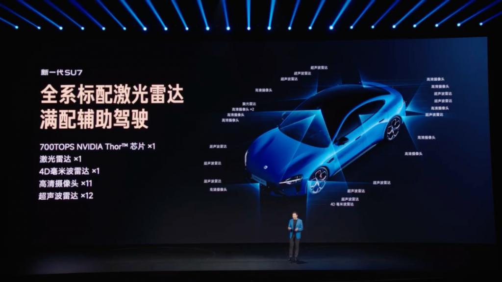 智能驾驶硬件方面,新一代 SU7 全系标配激光雷达、4D 毫米波雷达和 700TOPS 算力的英伟达 Thor 旗舰芯片,实现入门即满配。